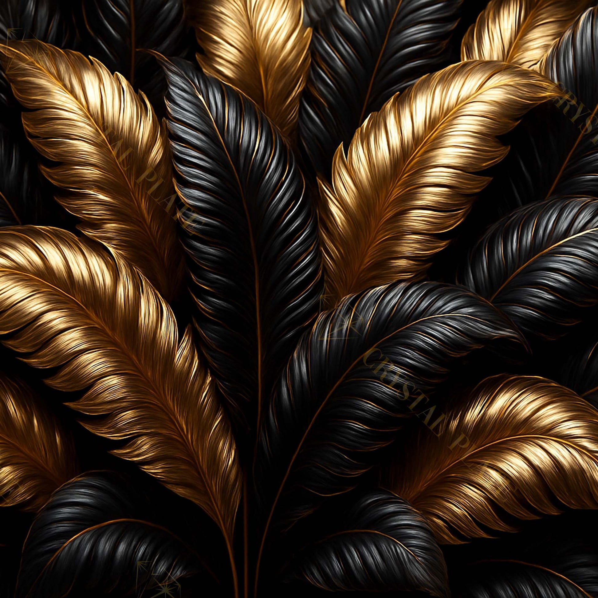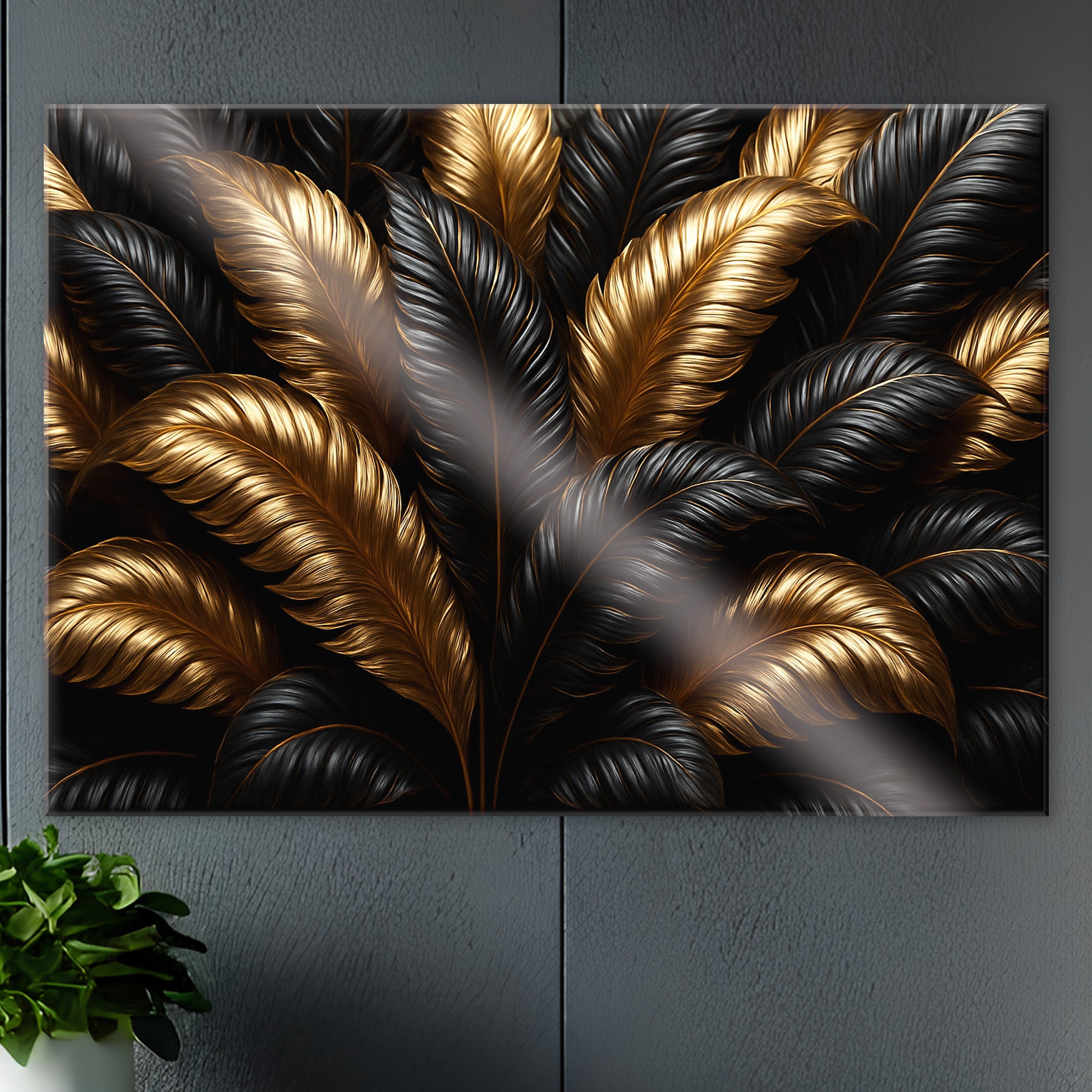 Feuilles d’Ébène – Tableau Noir & Or est une œuvre décorative immersive qui allie design végétal et esthétisme haut de gamme. Une composition dense et organique de feuilles aux courbes élégantes, baignées d’un contraste noir profond et de reflets dorés luxueux, évoquant opulence naturelle et raffinement sculptural.